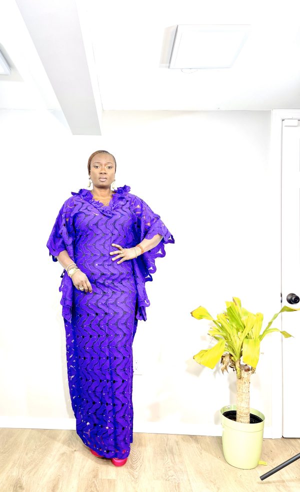 Details of exotic satin fabric and crystal stones on the neck area and back of the dress, with a nice tie on the sleeves